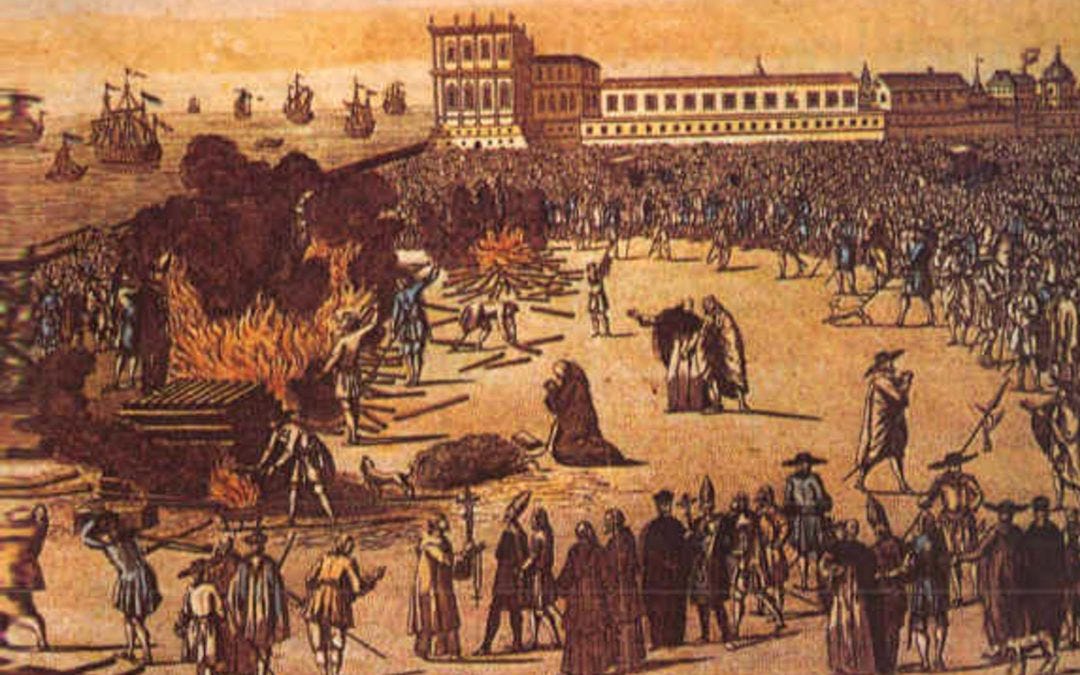 L’inquisizione portoghese nasce trent’anni dopo il massacro di Lisbona: aprile 1506. A me piace ricordare, credo non esista forma di giustizia più grande e, in qualche universo parallelo, se è vero che futuro e passato non esistono, credo anche che sia come togliere legna dal rogo, lame dalle spalle e corde agli impiccati. La storia non si può cancellare, ma nella mia immaginazione capita di stravolgere gli ordini dei piccoli uomini al comando. E in quella stessa immaginazione, nessun marinaio in cerca di ricompense, tantomeno un re a caccia di potere, possono portare a termine ciò che hanno fatto nella realtà. Gli ebrei dovevano convertirsi al cattolicesimo, erano additati come coloro che portavano siccità e peste. Uccisi in piazza Rossio e dintorni, il silenzio non poteva risarcire l’animo dei veri miserabili. In quei giorni, un gruppo di frati domenicani promise la grazia, l’assoluzione di ogni peccato, per chiunque avesse tolto la vita agli eretici. La voce divenne un grido che richiamò a Lisbona gente che veniva da lontanissimo. Non il re, fuggito per paura della peste. Vennero uccise centinaia di persone. I “nuovi cristiani” si chiusero in casa, ma fu inutile perché il passaparola nei vari quartieri, spaccava le porte di casa e li trascinava fuori con la forza. Bambini compresi. A volte si denunciava solo per rubare al vicino di casa, portargli via tutto con l’alibi della fede.